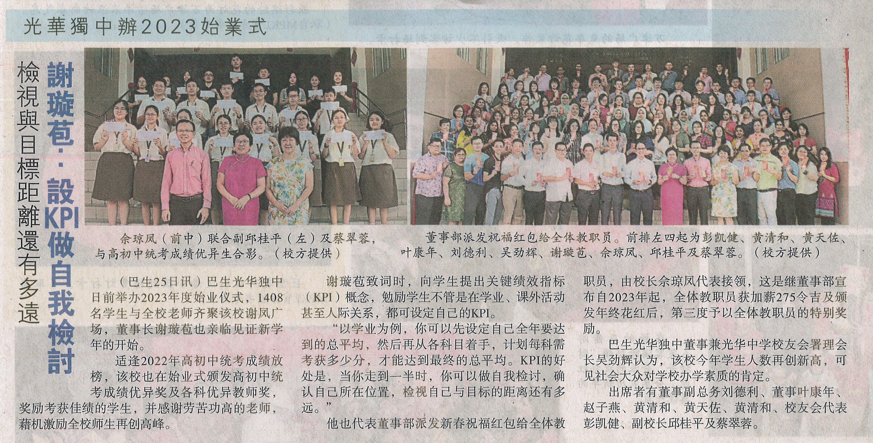 本校举行2023年始业式,学生设立KPI进行自我检讨