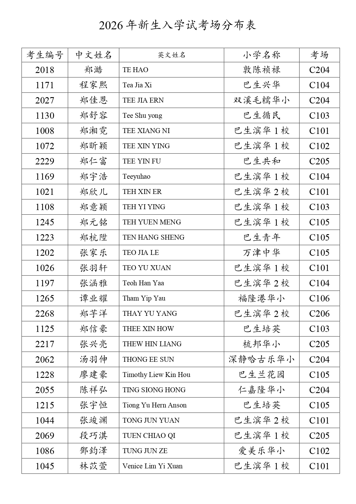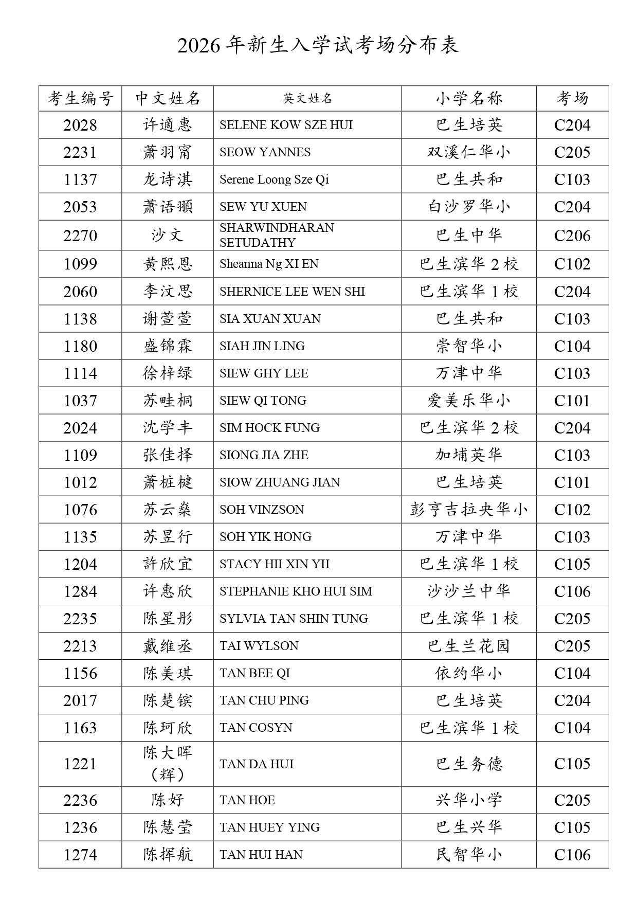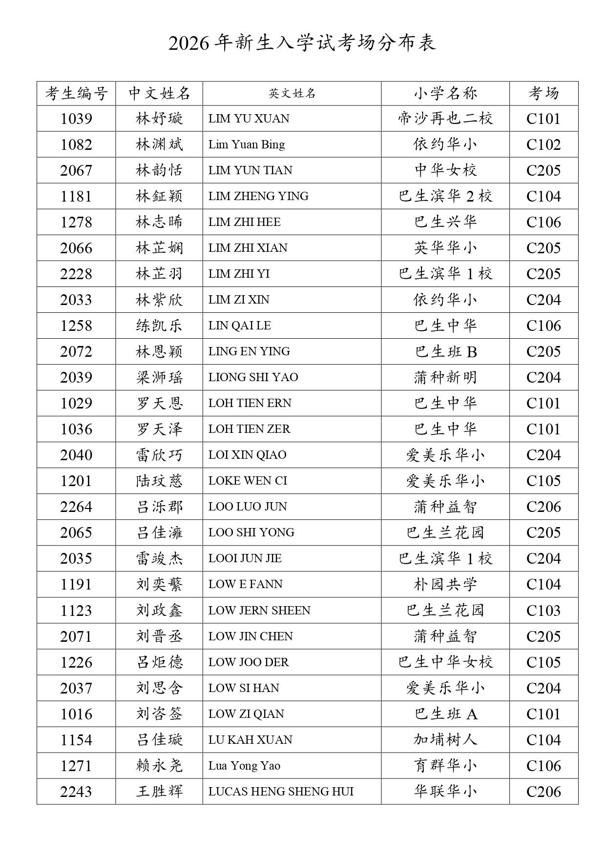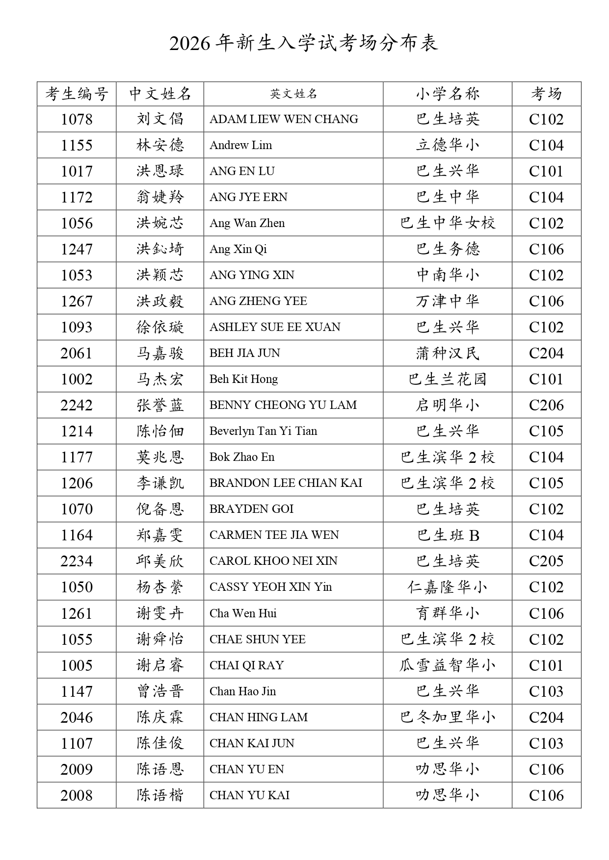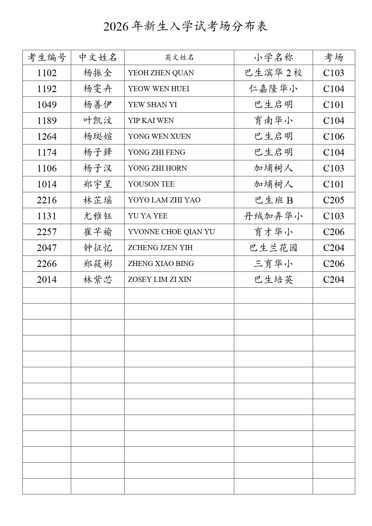 2026新生入学试考场分布表 - 网上报考+现场