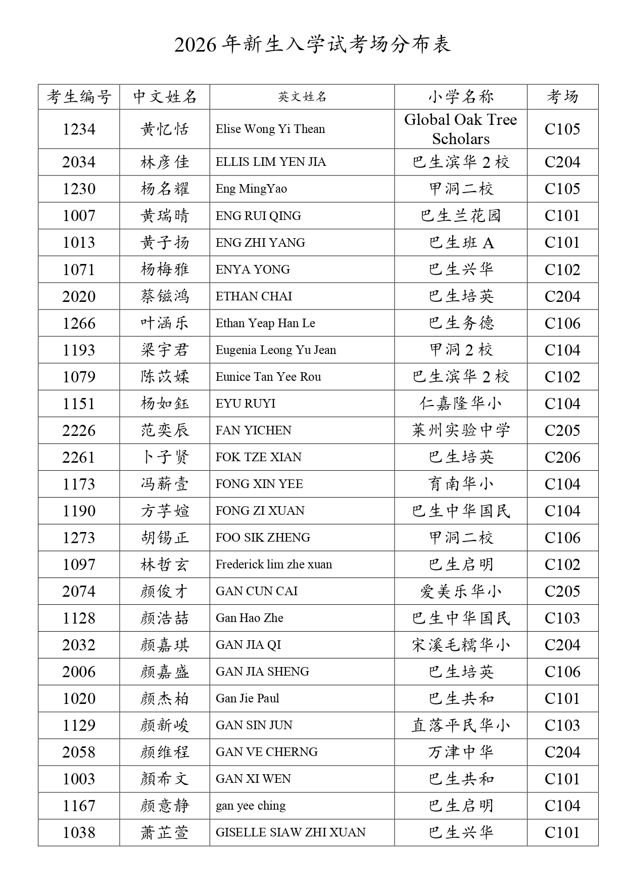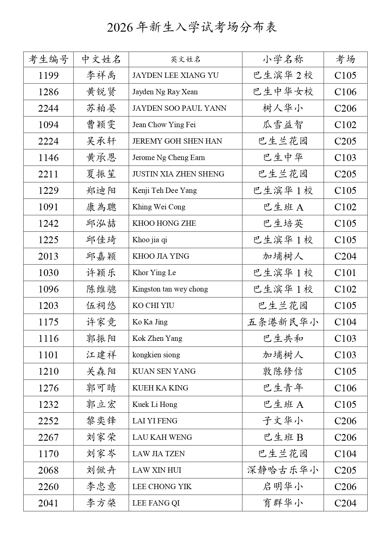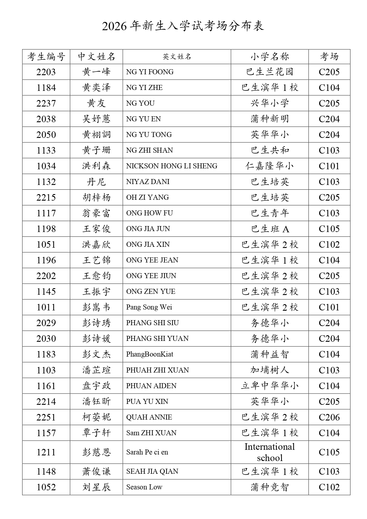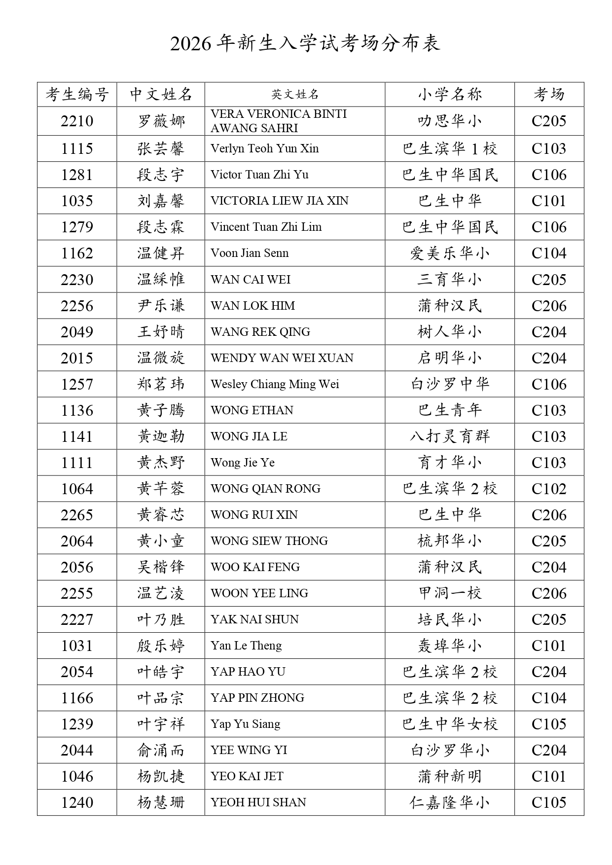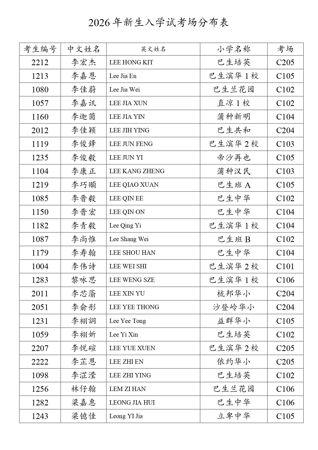 2026新生入学试考场分布表 - 网上报考+现场