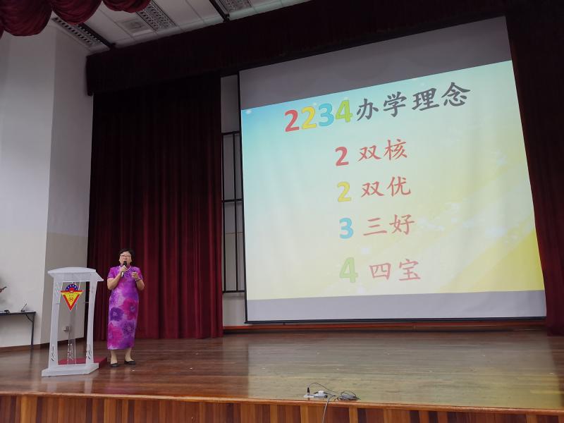 她也特别指出本校的“2234办学理念”——首个2为两个核心价值,即:正与和;第二个2为本校打造“双优”(优质与优雅)校园的目标;3为期盼学生成为“三好”青年——品德好、学业好和联课好;4则是本校的四大使命,即:恪守校训“诚勤俭毅”且传承中华文化、营造书香校园、弘扬感恩文化,以及打造科技校园。