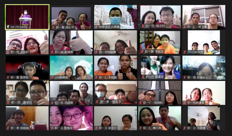 佘琼凤校长在线上新生训练营与家长和新生分享本校的“2234办学理念”,并呼吁新生家长们配合学校的办学理念,携手陪伴孩子成人成才。