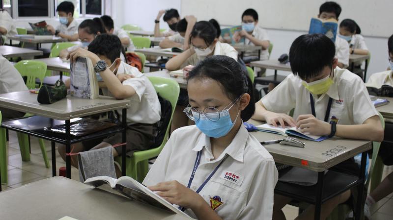 尽管新冠肺炎疫情持续严峻,本校依然不忘推广阅读的使命,配合4月23日世界书香日,举办一系列的阅读活动;图为学生在教室里集体阅读423秒。