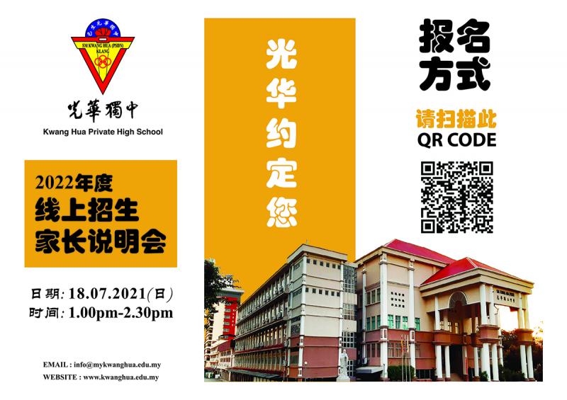 (巴生讯)本校将于7月18日(星期日)下午1时至2时30分举行“2022年度线上招生家长说明会”,家长即日起扫描二维码,就可报名参加。
