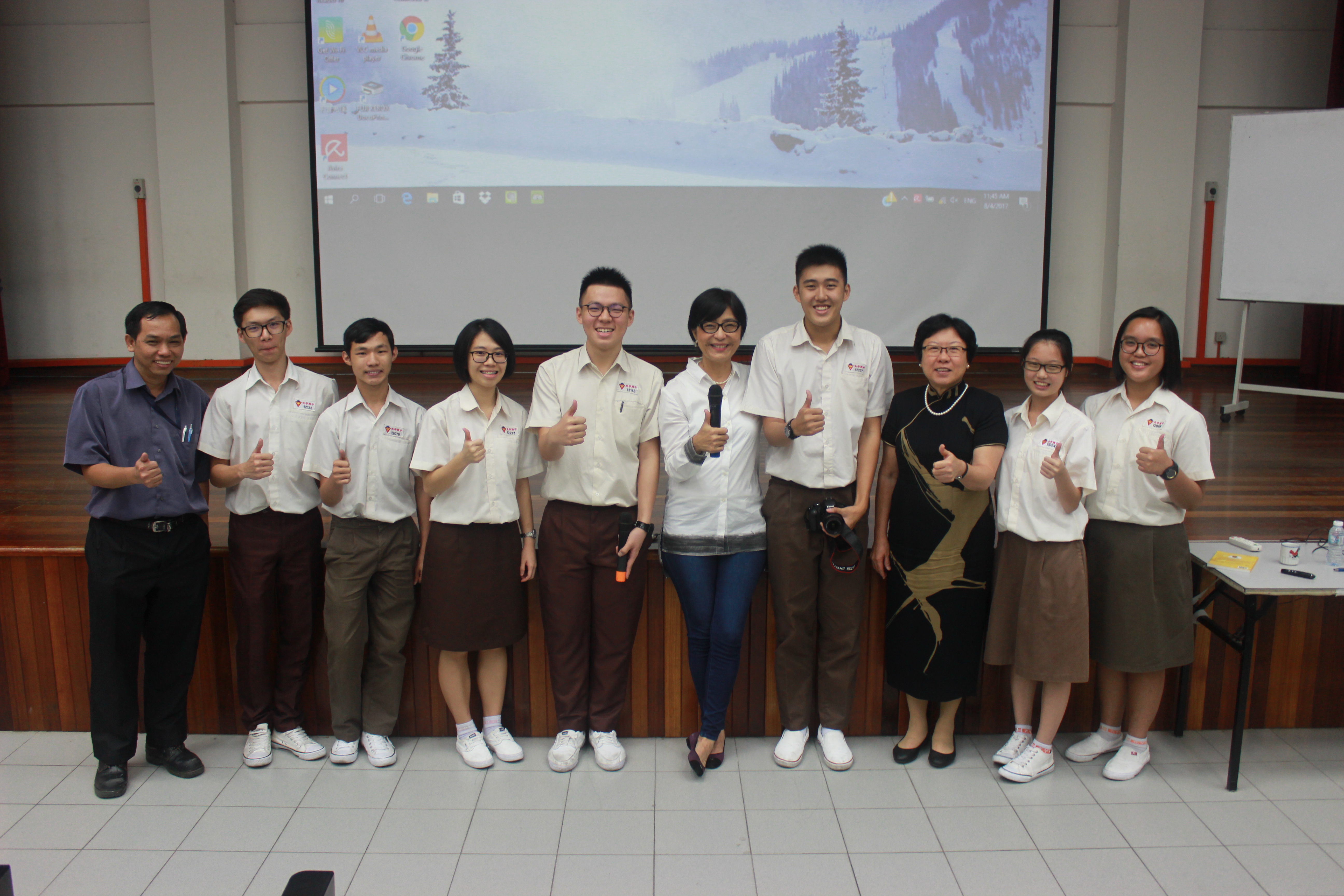 永乐多斯博士(右五)在讲座中邀请多位高三生分享他们对未来的目标。