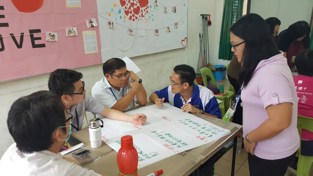 华独中的老师分成4人一组,让他们按照布鲁姆教育分类目标设计6个层次,讨论学习