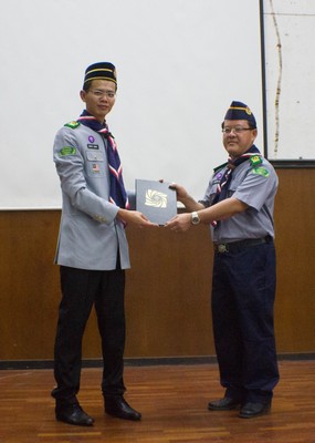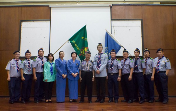 本校董事兼男女童军团(五团)理事会执行顾问吴劲辉日前代表董事长谢璇苞,在校长佘琼凤的见证下,颁发聘任状予罗万安,以及全体理事会成员、各团团长和教练。之后,全体团员宣誓就职。与此同时,现场也颁发委任状予各团干部及小队长。