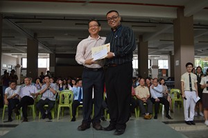 为了嘉奖在学业和联课活动方面表现优异的老师和学生,始业式中还穿插了一项颁奖仪式。黄金贵校长对于去年学生在统考中的进步,尤其电脑科目更加荣获全国十大而感到欣慰;扯铃项目也在国际比赛中得奖。但是,校长认为无论学生得奖与否,只要尽了力,都应该得到肯定。