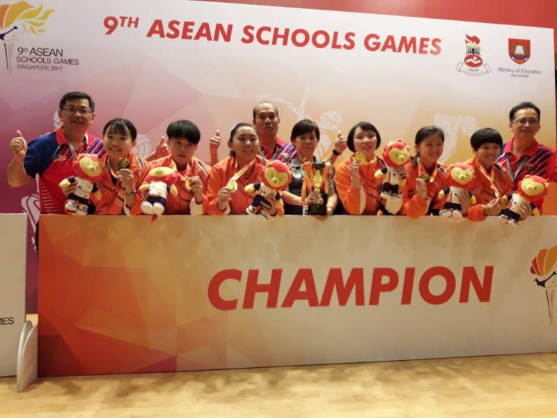 学生黃筠紫(右三)代表马来西亚参加第9届东南亚学联赛,并荣获乒乓团体冠军。
