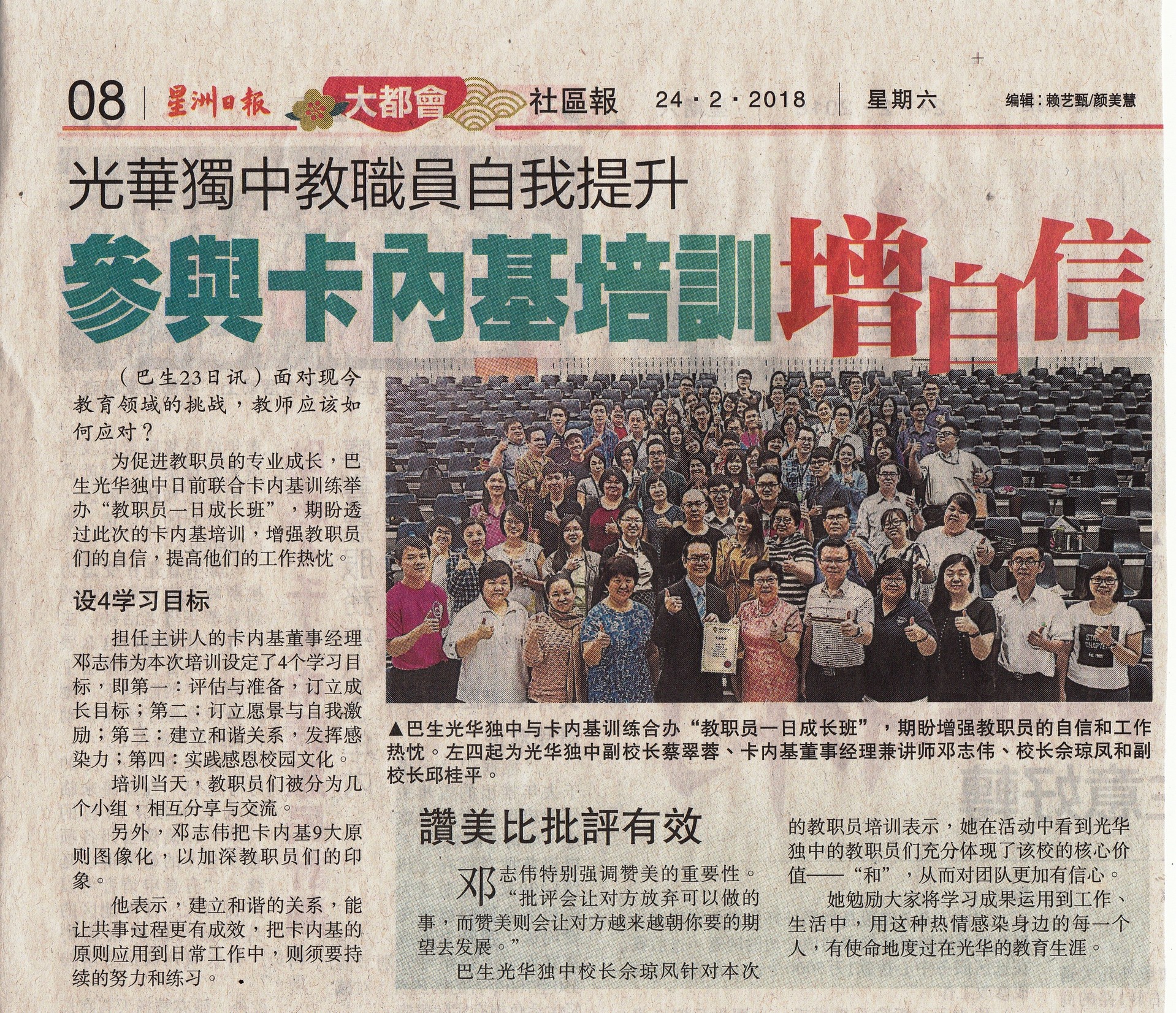 巴生光华独中与卡内基合办教职员一日成长班_星洲日报
