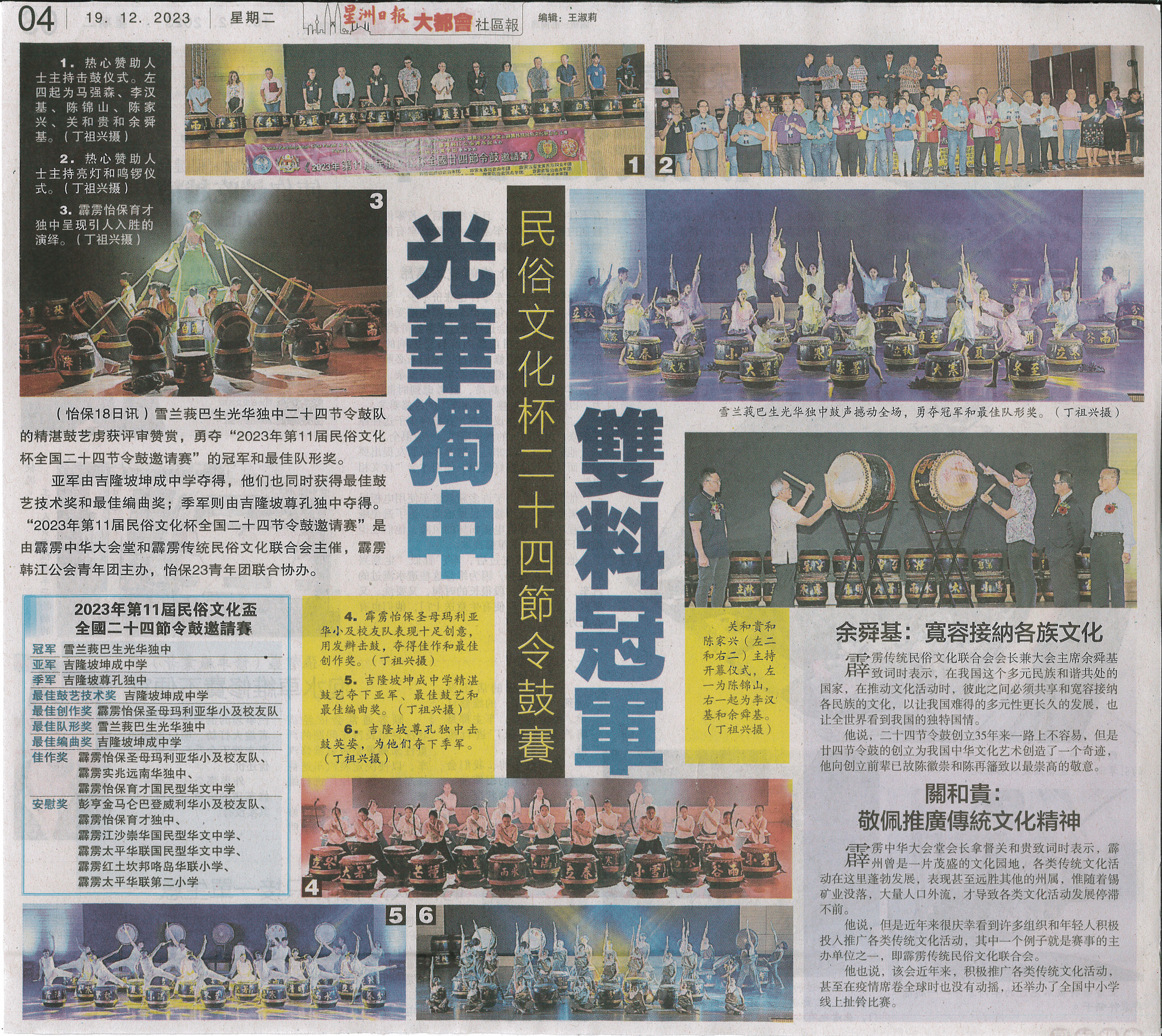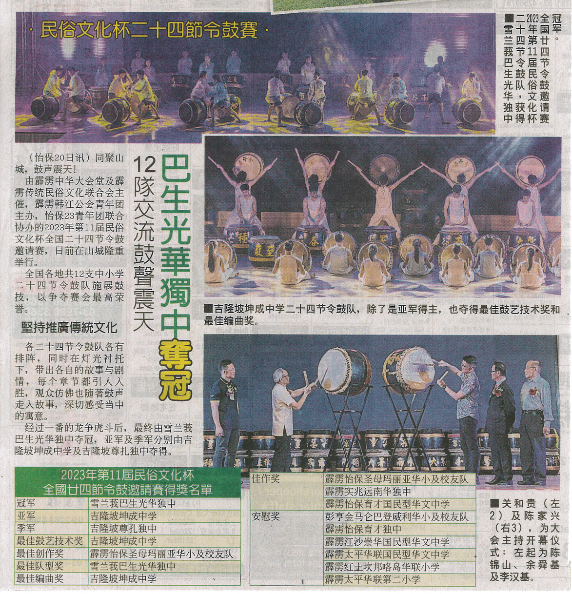 本校勇夺民俗文化杯二十四节令鼓赛双料冠军