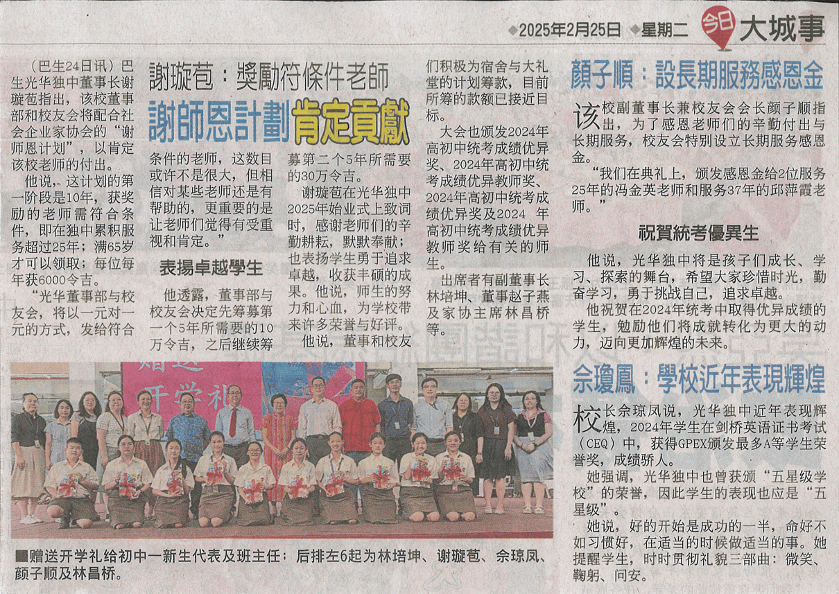 中国报 谢璇苞:奖励符条件老师 谢师恩计划肯定贡献